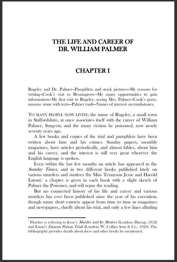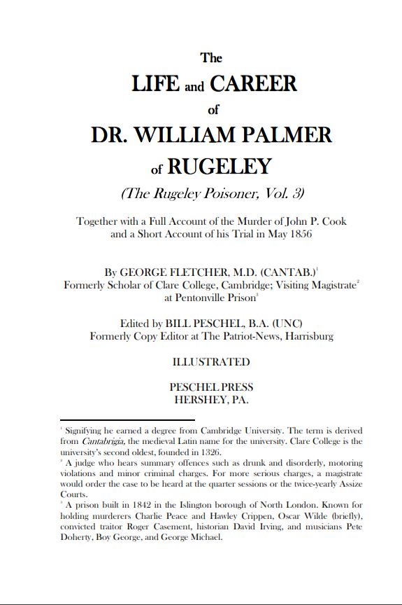 This is an excerpt from “The Life and Career of Dr. William Palmer of Rugeley” by George Fletcher and Bill Peschel, published by Peschel Press.